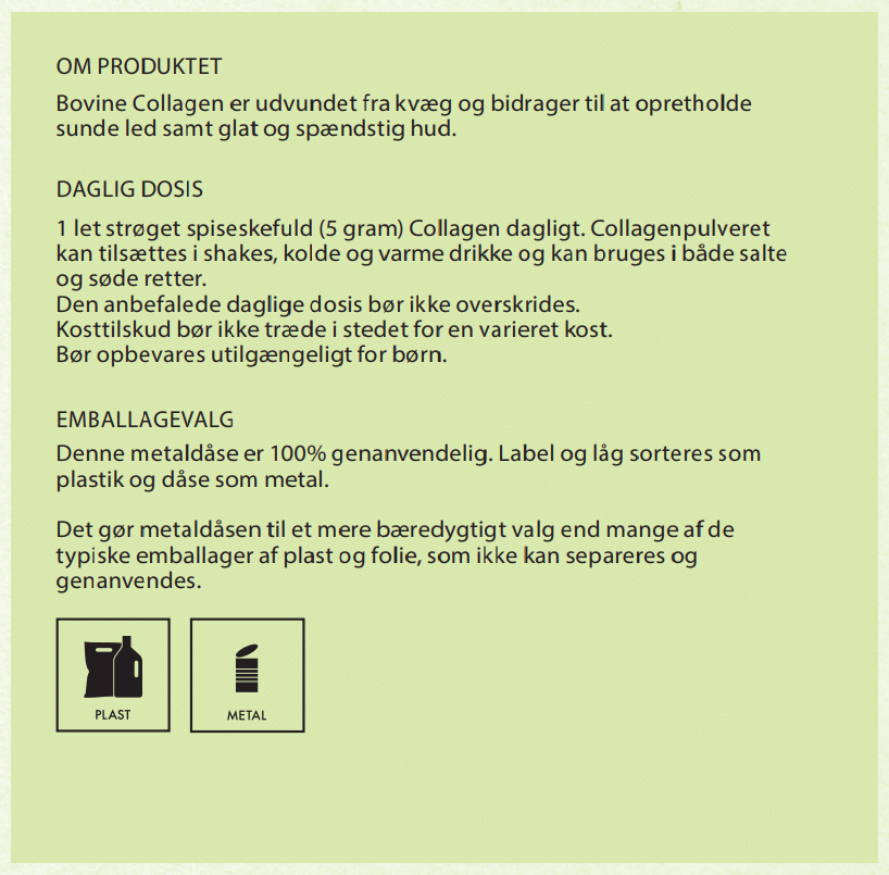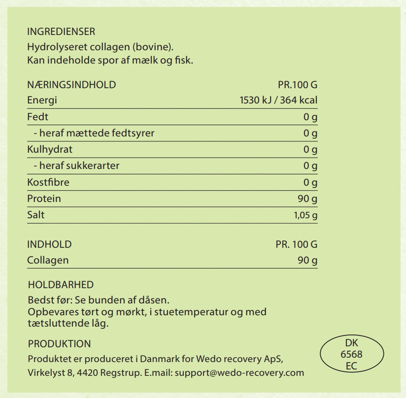 Vores bovine kollagenpulver indeholder type I og III kollagen, som understøtter hudens elasticitet, styrker hår og negle samt fremmer sunde led. Disse kollagenformer hjælper med at reducere rynker, forbedre hudens fasthed og give en naturlig glød.
